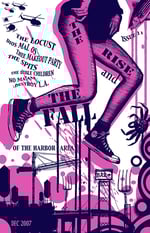 Aaron White talked me into this two-color cover that turned out great – thanks Aaron. Justin Pearson from the Locust answers some questions via e-mail. Joel Morales from Dios Malos deals with interviewer Jed Schipper without totally losing his cool. The Spits for dummies thingamajig. Thee Halbadal spends an afternoon with Thee Makeout Party. More haps on the Channel Street skatepark. Ian from Japanther sent me a two-page graffiti spread, you’ll see. “New Bands in Town” include The Bible Children, No Ma’am and Destroy L.A. Pedro Bob gives his take on “gentrification” in Pedro. Tito has his review of the Brite Spot Mexican restaurant and dealings with Vinnie Vegas. A cool photo spread by Shanty Cheryl documenting some Pedro gigs. A comic by Scott Aicher called “True Tales of an Eight Grade Aicher.” A rare comic panel by Victor Gastelum titled “Police Navidad.” A Robert Russo centerfold. Poems by Hank, plus more reviews than you could shake a stick at.